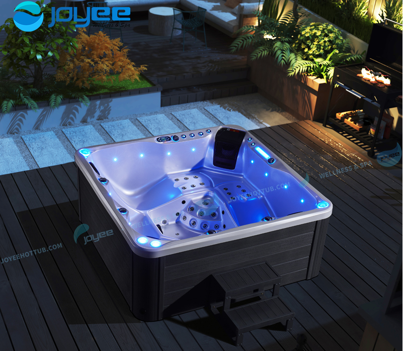 除此之外,为了降低能耗,节能环保和水质清洁在户外按摩大池制造中就显得尤为重要,我们JOYEE的户外按摩浴缸采用智能恒温系统,当池水加热到一定温度时,温度会保持恒定,做到节能省电。我们还具有臭氧杀菌系统和高效反渗透滤芯,循环过滤水中杂质,确保水质始终保持清洁的同时,有效地节约水能。